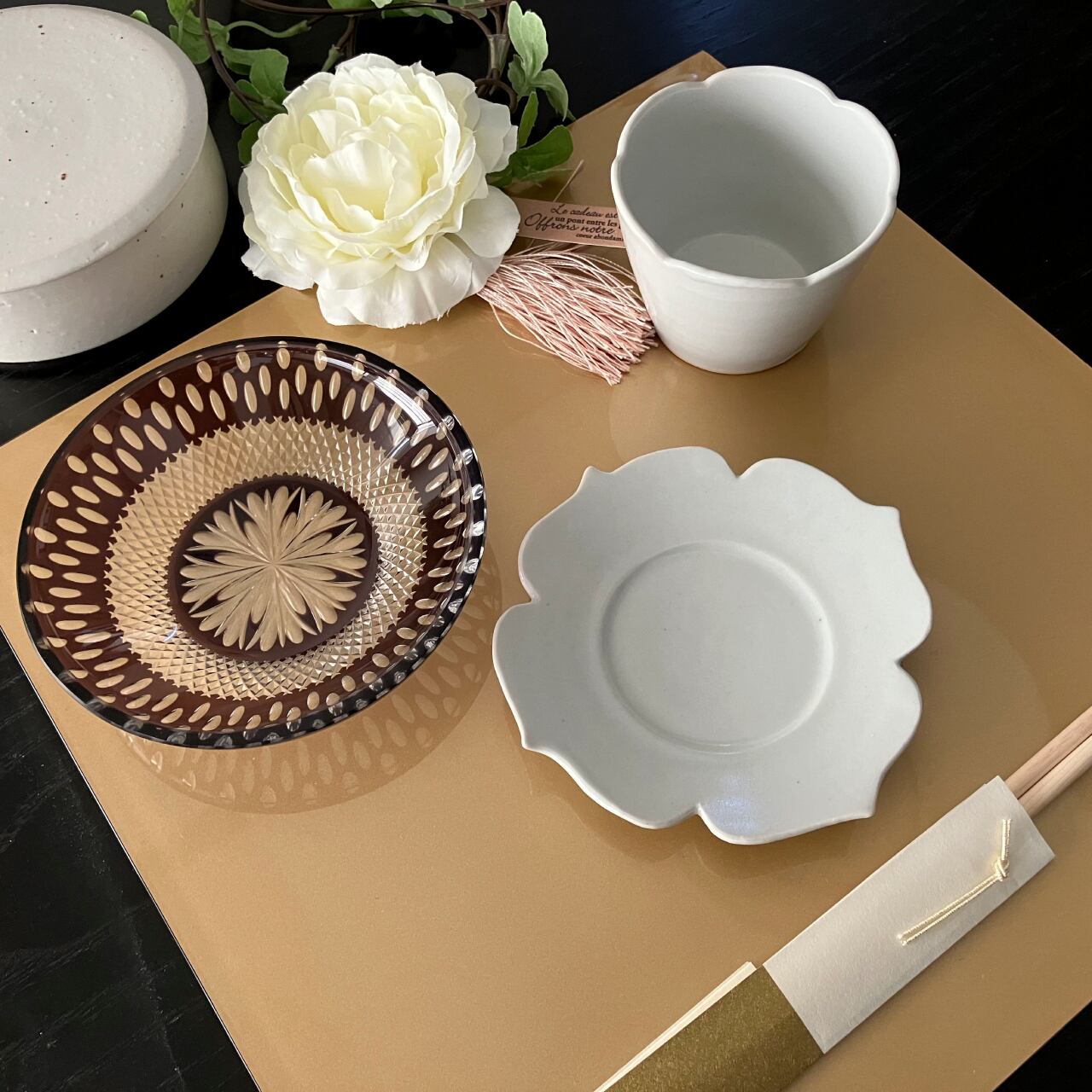 美しくカットされた切子の小皿は使うだけでなく、眺めても、手に取ってみても楽しめます。