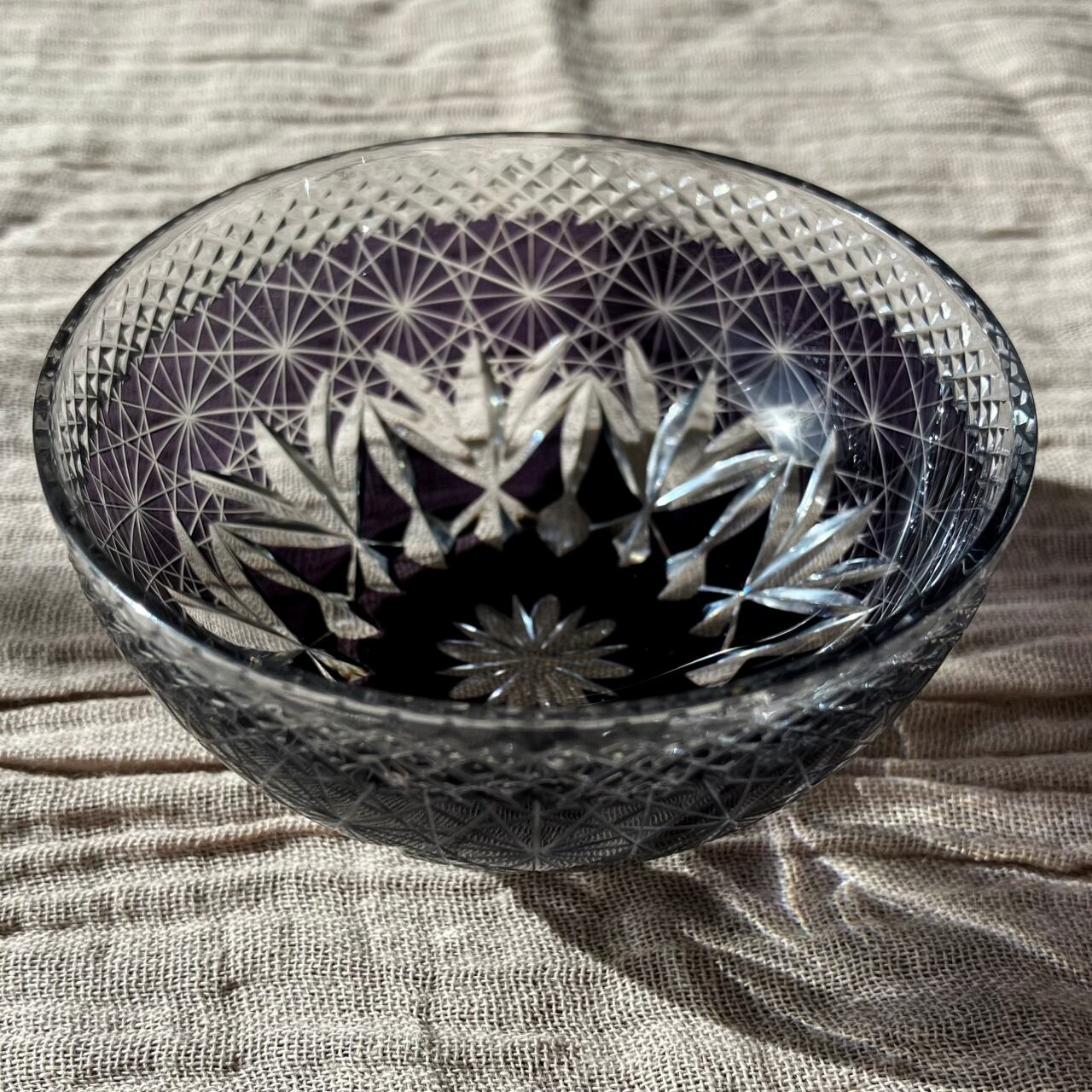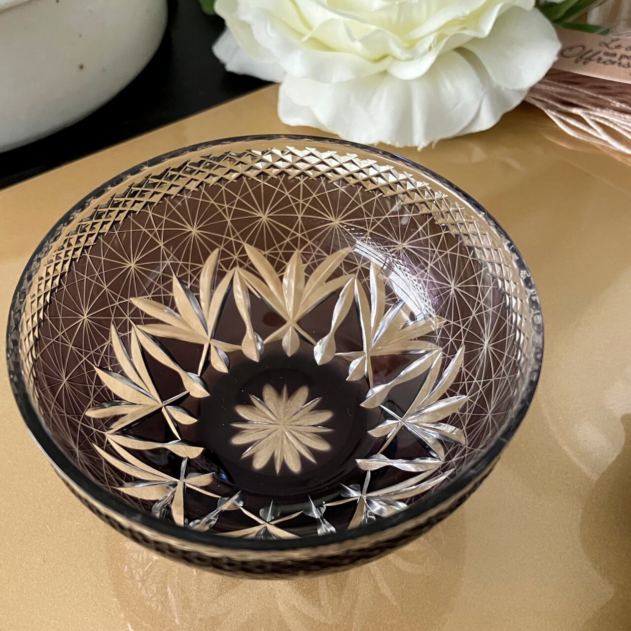 【田添琴英さん作】切子 豆鉢 菊繋ぎ・魚子 ムラサキ